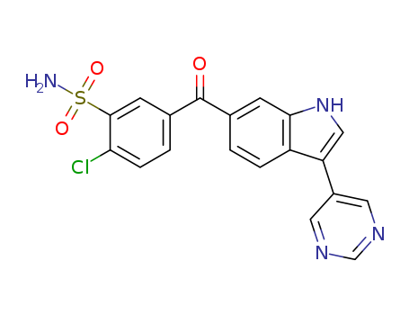 2-chloro-5-(3-pyrimidin-5-yl-1H-indole-6-carbonyl)-benzenesulfonamide(1189544-74-8)