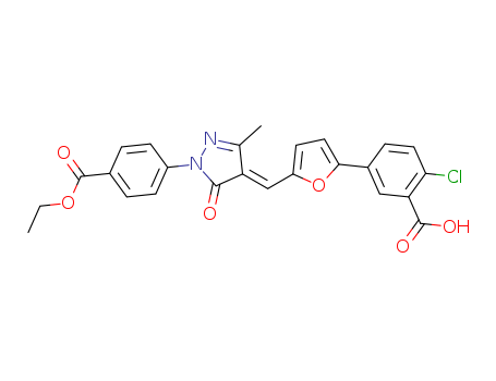 - Name: 2-chloro-5-[5-({1-[4-(ethoxycarbonyl)phenyl]-3-methyl-5-oxo-1,5-dihydro-4H-pyrazol-4-ylidene}methyl)-2-furyl]benzoic acid