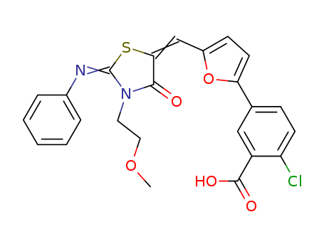 - Name: 2-chloro-5-{5-[3-(2-methoxy-ethyl)-4-oxo-2-phenylimino-thiazolidin-5-ylidenemethyl]-furan-2-yl}-benzoic acid