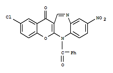 - 115410-28-1/2-chloro-9-nitro-6-(phenylcarbonyl)chromeno[2,3-b][1,5]benzodiazepin-13(6H)-one