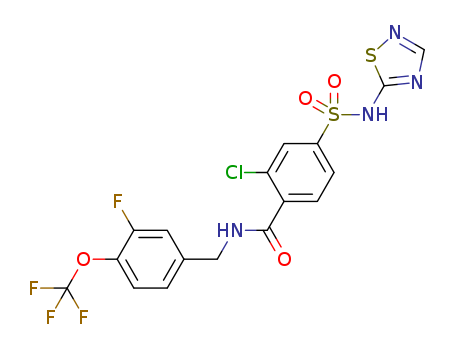 - Name: 2-chloro-N-[3-fluoro-4-(trifluoromethoxy)benzyl]-4-[(1,2,4-thiadiazol-5-ylamino)sulfonyl]benzamide