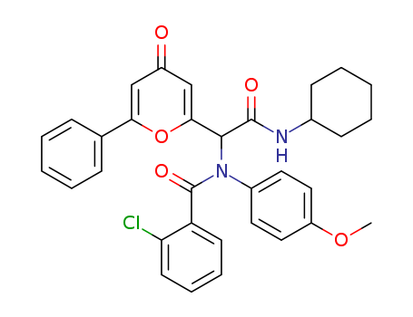 - Synonyms:2-chloro-N-[(cyclohexylcarbamoyl)(4-oxo-6-phenyl-4Hpyran-2-yl)methyl]-N-(4-methoxyphenyl)benzamide