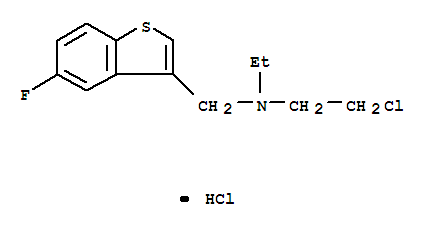 - Synonyms:Benzo[b]thiophene-3-methanamine,N-(2-chloroethyl)-N-ethyl-5-fluoro-, hydrochloride (9CI);Benzo[b]thiophene-3-methylamine, N-(2-chloroethyl)-N-ethyl-5-fluoro-,hydrochloride (8CI)