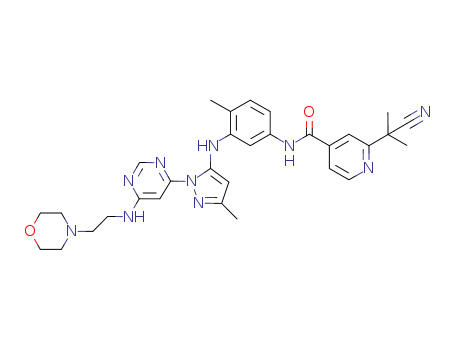 2-cyano(dimethyl)methyl-N-(4-methyl-3-(5-methyl-2-(6-(2-morpholin-4-ylethylamino)pyrimidin-4-yl)-2H-pyrazol-3-ylamino)-phenyl)-isonicotinamide(1018468-01-3)