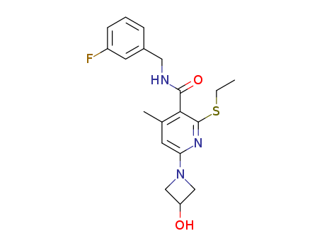 2-ethylsulfanyl-N-[(3-fluorophenyl)-methyl]-6-(3-hydroxy-azetidin-1-yl)-4-methyl-pyridine-3-carboxylic acid amide(1373485-84-7)