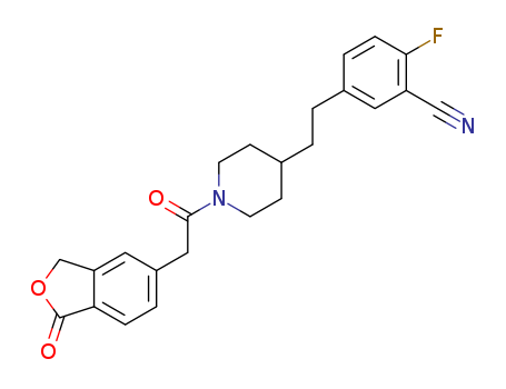 - Name: 2-fluoro-5-[2-{1-[(1-oxo-1,3-dihydro-2-benzofuran-5-yl)acetyl]piperidin-4-yl}ethyl]benzonitrile