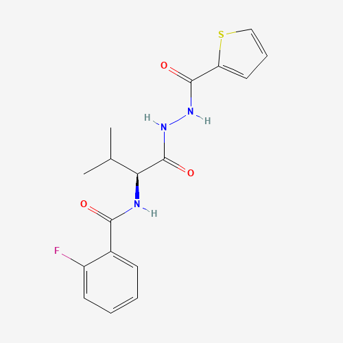 - Name: 2-fluoro-N-[(2S)-3-methyl-1-oxo-1-[2-(thiophene-2-carbonyl)hydrazinyl]butan-2-yl]benzamide