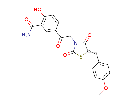 - Synonyms:2-hydroxy-5-{2-[5-(4-methoxybenzylidene)-2,4-dioxothiazolidin-3-yl]acetyl}benzamide