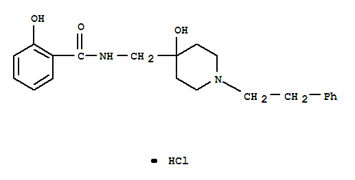 - Synonyms:Benzamide,2-hydroxy-N-[[4-hydroxy-1-(2-phenylethyl)-4-piperidinyl]methyl]-,monohydrochloride (9CI); Salicylamide,N-[(4-hydroxy-1-phenethyl-4-piperidyl)methyl]-, monohydrochloride (8CI)