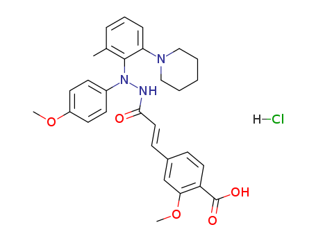 - Name: 2-methoxy-4-{(E)-2-[N-(4-methoxy-phenyl)-N-(2-methyl-6-piperidin-1-yl-phenyl)-hydrazinocarbonyl]-vinyl}-benzoic acid hydrochloride