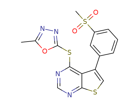 - Synonyms:2-methyl-5-(5-(3-(methylsulfonyl)phenyl)thieno[2,3-d]pyrimidin-4-ylthio)-1,3,4-oxadiazole