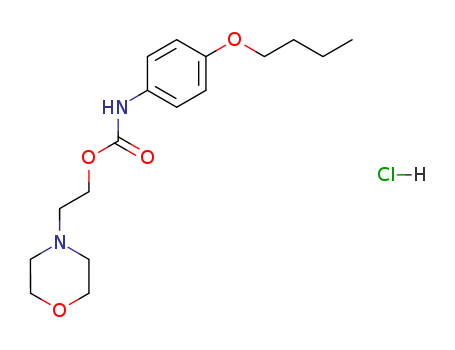 - Synonyms:2-Morpholinoethyl (4-butoxyphenyl)carbamate monohydrochloride;2-morpholin-4-ylethyl N-(4-butoxyphenyl)carbamate hydrochloride;Carbamic aicd,(4-butoxyphenyl)-,2-(4-morpholinyl)ethyl ester,monohydrochloride;