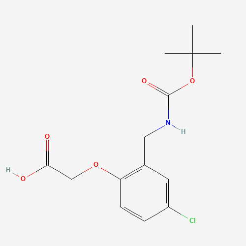 - Synonyms:SCHEMBL7372767;MHIMOCLFBSFPHP-UHFFFAOYSA-N;DTXSID401137145;2-t-Butoxycarbonylaminomethyl-4-Chlorophenoxyacetic Acid;2-[4-Chloro-2-[[[(1,1-dimethylethoxy)carbonyl]amino]methyl]phenoxy]acetic acid;195517-89-6