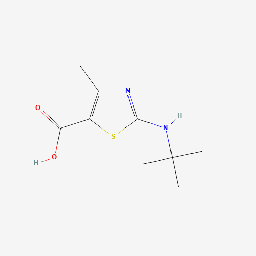 - Synonyms:162651-11-8;5-Thiazolecarboxylic acid, 2-[(1,1-dimethylethyl)amino]-4-methyl-;SCHEMBL8554826;FXAPSYXKUGWVLK-UHFFFAOYSA-N;DTXSID801175064;AKOS002675131;2-t-butylamino-4-methyl-thiazole-5-carboxylic acid;2-[(1,1-Dimethylethyl)amino]-4-methyl-5-thiazolecarboxylic acid