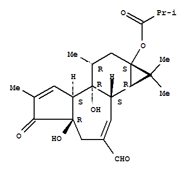 - Synonyms:Propanoicacid, 2-methyl-,3-formyl-1,1a,1b,4,4a,5,7a,7b,8,9-decahydro-4a,7b-dihydroxy-1,1,6,8-tetramethyl-5-oxo-9aH-cyclopropa[3,4]benz[1,2-e]azulen-9a-ylester, [1aR-(1aa,1bb,4ab,7aa,7ba,8a,9aa)]-; 9aH-Cyclopropa[3,4]benz[1,2-e]azulene, propanoic acid deriv.