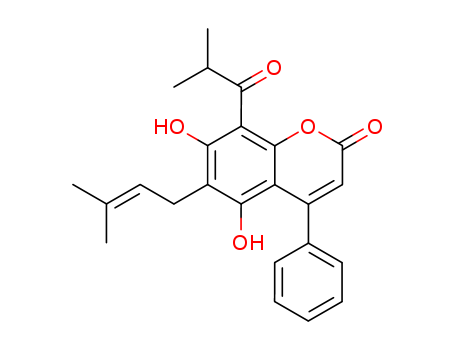 2H-1-Benzopyran-2-one,5,7-dihydroxy-6-(3-methyl-2-buten-1-yl)-8-(2-methyl-1-oxopropyl)-4-phenyl-