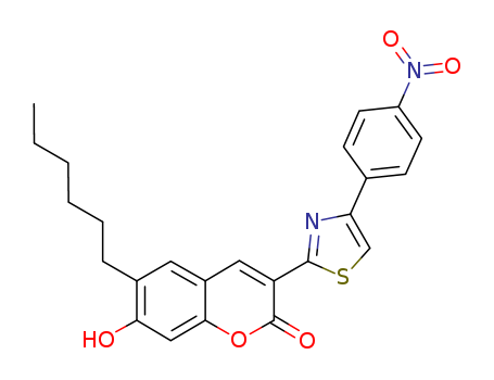 - Name: 2H-1-Benzopyran-2-one, 6-hexyl-7-hydroxy-3-[4-(4-nitrophenyl)-2-thiazolyl]-