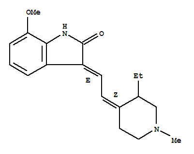 - Name: 2H-Indol-2-one,3-[(2Z)-(3-ethyl-1-methyl-4-piperidinylidene)ethylidene]-1,3-dihydro-7-methoxy-,(3E)-(+)- (9CI)