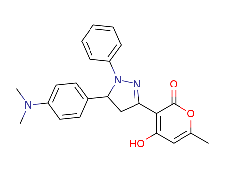 2H-Pyran-2-one, 3-[5-[4-(dimethylamino)phenyl]-4,5-dihydro-1-phenyl-1H-pyrazol-3-yl]-4- hydroxy-6-methyl-(56364-38-6)