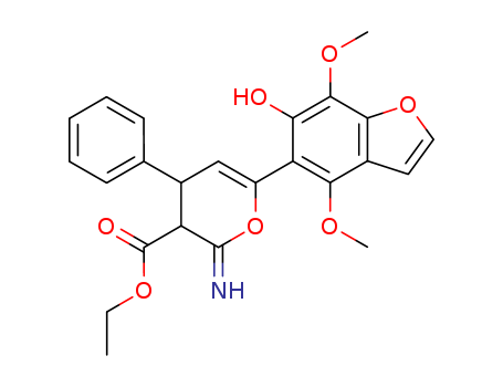 2H-Pyran-3-carboxylic acid, 3,4-dihydro-6-(6-hydroxy-4,7-dimethoxy-5-benzofuranyl)-2-imino-4-phen yl-, ethyl ester
