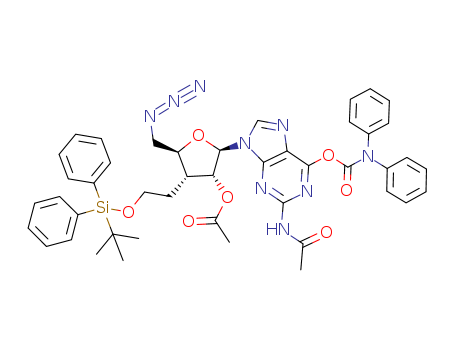 2'-O-acetyl-5'-azido-3'-[2-(tert-butyldiphenylsilanyloxy)ethyl]-3',5'-dideoxy-2-N-acetyl-6-O-diphenylcarbamoylguanosine(871240-73-2)