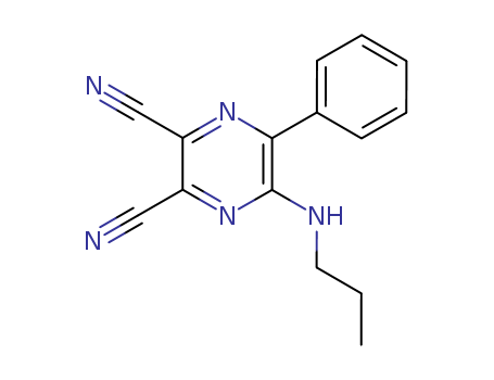 - Synonyms:2,3-Pyrazinedicarbonitrile,5-phenyl-6-(propylamino);2,3-Dicyano-5-propylamino-6-phenylpyrazine;6-Phenyl-5-propylamino-2,3-pyrazinedicarbonitrile;5-phenyl-6-propylamino-pyrazine-2,3-dicarbonitrile;2,3-dicyano-5-n-propylamino-6-phenylpyrazine;