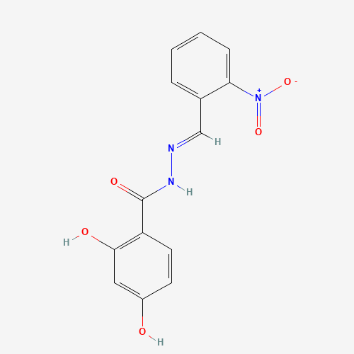 - Synonyms:2,4-Dihydroxy-N'-(2-nitrobenzylidene)benzohydrazide;304481-61-6;2,4-dihydroxy-N-[(E)-(2-nitrophenyl)methylideneamino]benzamide;AG-205/40045632;2,4-dihydroxy-N'-{2-nitrobenzylidene}benzohydrazide;DTXSID60416340;GNHROMISKMPYSU-OVCLIPMQSA-N;STK043500;AKOS000485090;2,4-dihydroxy-N'-[(E)-(2-nitrophenyl)methylidene]benzohydrazide;2,4-dihydroxy-N'~1~-[(E)-1-(2-nitrophenyl)methylidene]benzohydrazide