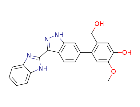 - Name: 3-1H-Benzoimidazol-2-yl-6-(2-(hydroxymethyl)-5-methoxy-4-hydroxy-phenyl)-1H-indazole
