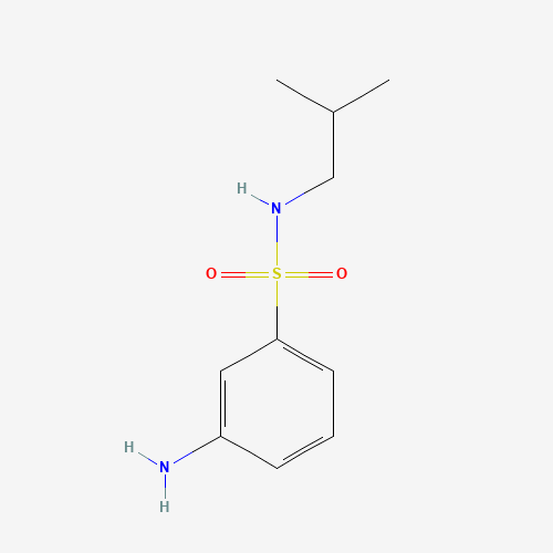 - Synonyms:608523-95-1;3-AMINO-N-(2-METHYLPROPYL)BENZENESULFONAMIDE;3-amino-n-isobutyl-benzenesulfonamide;SCHEMBL5032592;FBCMXYUDYLXISX-UHFFFAOYSA-N;DTXSID001256058;AKOS000145427;DB-136429