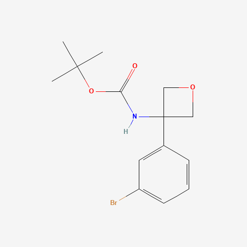 - Synonyms:1416323-32-4;3-Boc-amino-3-(3-bromophenyl)oxetane;TERT-BUTYL N-[3-(3-BROMOPHENYL)OXETAN-3-YL]CARBAMATE;tert-Butyl (3-(3-bromophenyl)oxetan-3-yl)carbamate;DTXSID501147337;MFCD22628719;3-(Boc-amino)-3-(3-bromophenyl)oxetane;AS-78888;CS-0183507;D79665;EN300-7360615;tert-butyl 3-(3-bromophenyl)-3-oxetanylcarbamate;t-Butyl N-[3-(3-bromophenyl)oxetan-3-yl]carbamate;tert-Butyl(3-(3-bromophenyl)oxetan-3-yl)carbamate;Carbamic acid, N-[3-(3-bromophenyl)-3-oxetanyl]-, 1,1-dimethylethyl ester