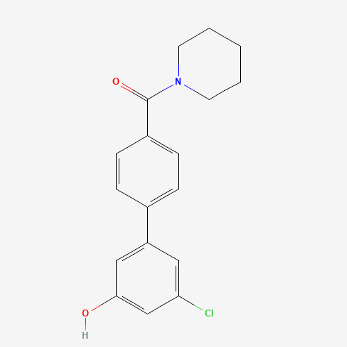 - Synonyms:1261922-38-6;3-CHLORO-5-[4-(PIPERIDINE-1-CARBONYL)PHENYL]PHENOL;DTXSID00686202;MFCD18315837;(3'-Chloro-5'-hydroxy[1,1'-biphenyl]-4-yl)(piperidin-1-yl)methanone