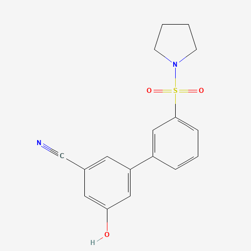 - Synonyms:1262002-96-9;3-CYANO-5-[3-(PYRROLIDINYLSULFONYL)PHENYL]PHENOL;DTXSID60685014;MFCD18314584;5-Hydroxy-3'-(pyrrolidin-1-ylsulfonyl)-[1,1'-biphenyl]-3-carbonitrile;5-Hydroxy-3'-(pyrrolidine-1-sulfonyl)[1,1'-biphenyl]-3-carbonitrile