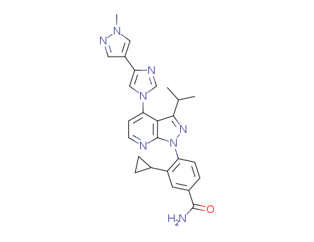- Name: 3-Cyclopropyl-4-{3-isopropyl-4-(4-(1-methyl-1H-pyrazol-4-yl)-1H-imidazol-1-yl)-1H-pyrazolo[3,4-b]pyridin-1-yl}benzamide