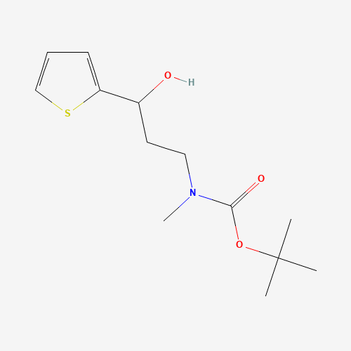 - Synonyms:939757-32-1;3-Hydroxy-3-(2-thienyl)propyl]methylcarbamic Acid 1,1-Dimethylethyl Ester;tert-butyl N-(3-hydroxy-3-thiophen-2-ylpropyl)-N-methylcarbamate;SCHEMBL20309012;(3-hydroxy-3-thiophen-2-ylpropyl)methylcarbamic acid tert-butyl ester;AKOS015855565;EN300-4350278;(3-hydroxy-3-thiophen-2-yl-propyl)methyl carbamic acid tert-butyl ester;TERT-BUTYL N-[3-HYDROXY-3-(THIOPHEN-2-YL)PROPYL]-N-METHYLCARBAMATE