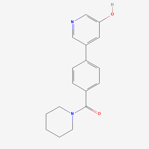 - Synonyms:1261932-36-8;3-HYDROXY-5-[4-(PIPERIDINE-1-CARBONYL)PHENYL]PYRIDINE;3-Hydroxy-5-(4-(piperidine-1-carbonyl)phenyl)pyridine;DTXSID90683240;MFCD18312542;[4-(5-Hydroxypyridin-3-yl)phenyl](piperidin-1-yl)methanone