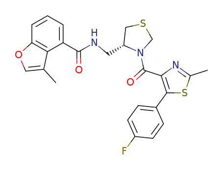 3-Methyl-benzofuran-4-carboxylic acid {(R)-3-[5-(4-fluoro-phenyl)-2-methyl-thiazole-4-carbonyl]-thiazolidin-4-ylmethyl}-amide(1061590-39-3)