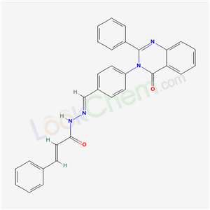 - 132785-13-8/3-Phenyl-2-propenoic acid ((4-(4-oxo-2-phenyl-3(4H)-quinazolinyl)phenyl)methylene)hydrazide