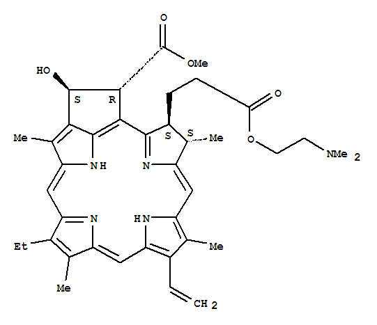- Name: 3-Phorbinepropanoicacid,9-ethenyl-14-ethyl-20-hydroxy-21-(methoxycarbonyl)-4,8,13,18-tetramethyl-,2-(dimethylamino)ethyl ester, (3S,4S,20S,21R)-