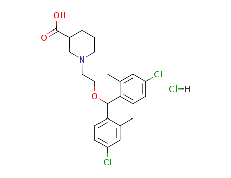 - Name: 3-Piperidinecarboxylic acid, 1-[-[bis-(4-chloro-2-methylphenyl)methoxy]ethyl]-, monohydrochloride