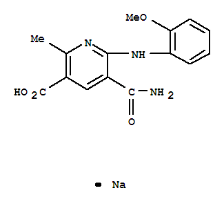 - Synonyms:3-Pyridinecarboxylicacid, 5-(aminocarbonyl)-6-[(2-methoxyphenyl)amino]-2-methyl-, monosodium salt(9CI)