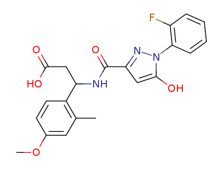 - Name: 3-{[1-(2-fluoro-phenyl)-5-hydroxy-1H-pyrazole-3-carbonyl]-amino}-3-(4-methoxy-2-methyl-phenyl)-propionic acid