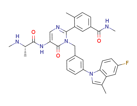 - Name: 3-[1-[3-(5-fluoro-3-methylindol-1-yl)benzyl]-5-((S)-2-methylaminopropionylamino)-6-oxo-1,6-dihydropyrimidin-2-yl]-4,N-dimethylbenzamide