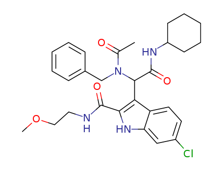 - Name: 3-(1-(N-benzylacetamido)-2-(cyclohexylamino)-2-oxoethyl)-6-chloro-N-(2-metboxyethyl)-1H-indole-2-carboxamide
