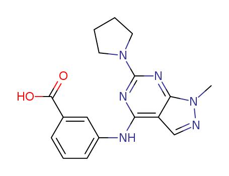 - Synonyms:3-{[1-methyl-6-[1-pyrrolidinyl]-1H-pyrazolo[3,4-d]pyrimidin-4-yl]amino}benzoic acid