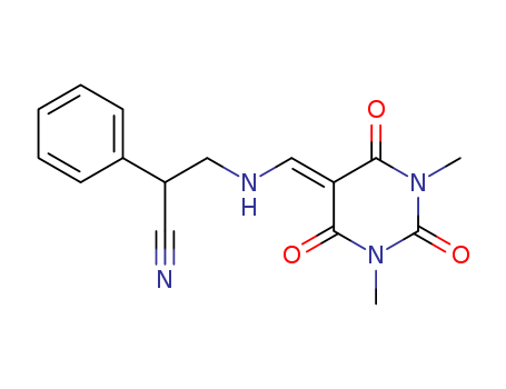 - 34133-51-2/3-[(1,3-Dimethyl-2,4,6-trioxo-tetrahydro-pyrimidin-5-ylidenemethyl)-amino]-2-phenyl-propionitrile