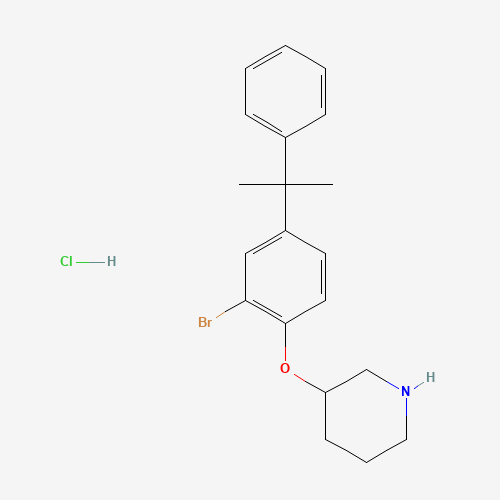 - Synonyms:1220030-55-6;3-[2-BROMO-4-(1-METHYL-1-PHENYLETHYL)PHENOXY]-PIPERIDINE HYDROCHLORIDE;3-(2-Bromo-4-(2-phenylpropan-2-yl)phenoxy)piperidine hydrochloride;3-[2-bromo-4-(2-phenylpropan-2-yl)phenoxy]piperidine;hydrochloride;AKOS015843584;3-(2-Bromo-4-(2-phenylpropan-2-yl)phenoxy)piperidinehydrochloride