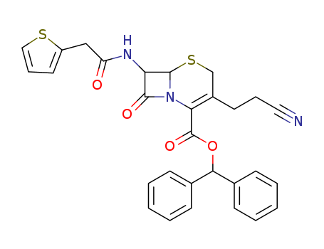 - Name: 3-(2-Cyano-ethyl)-8-oxo-7-(2-thiophen-2-yl-acetylamino)-5-thia-1-aza-bicyclo[4.2.0]oct-2-ene-2-carboxylic acid benzhydryl ester