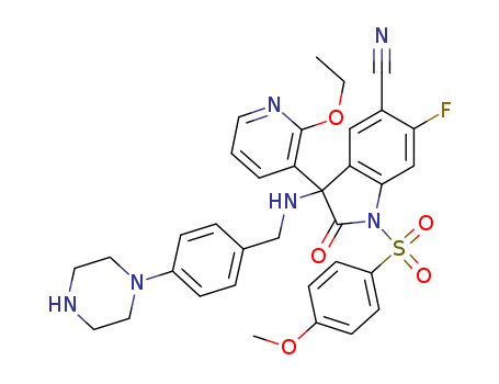 - 1170678-13-3/3-(2-Ethoxypyridin-3-yl)-6-fluoro-1-(4-methoxyphenylsulfonyl)-2-oxo-3-(4-piperazin-1-yl-benzylamino)-2,3-dihydro-1H-indole-5-carbonitrile