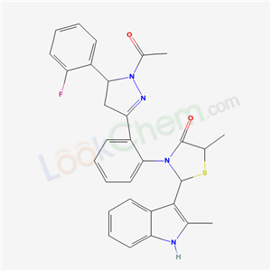 3-{2-[1-acetyl-5-(2-fluorophenyl)-4,5-dihydro-1H-pyrazol-3-yl]phenyl}-5-methyl-2-(2-methyl-1H-indol-3-yl)-1,3-thiazolidin-4-one(133405-37-5)