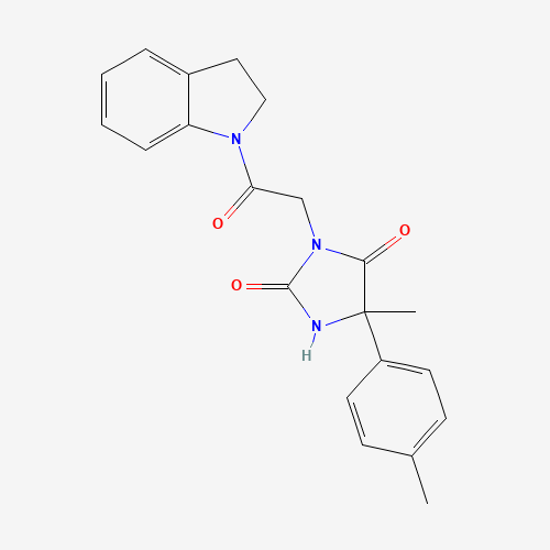 - Name: 3-[2-(2,3-Dihydroindol-1-yl)-2-oxoethyl]-5-methyl-5-(4-methylphenyl)imidazolidine-2,4-dione